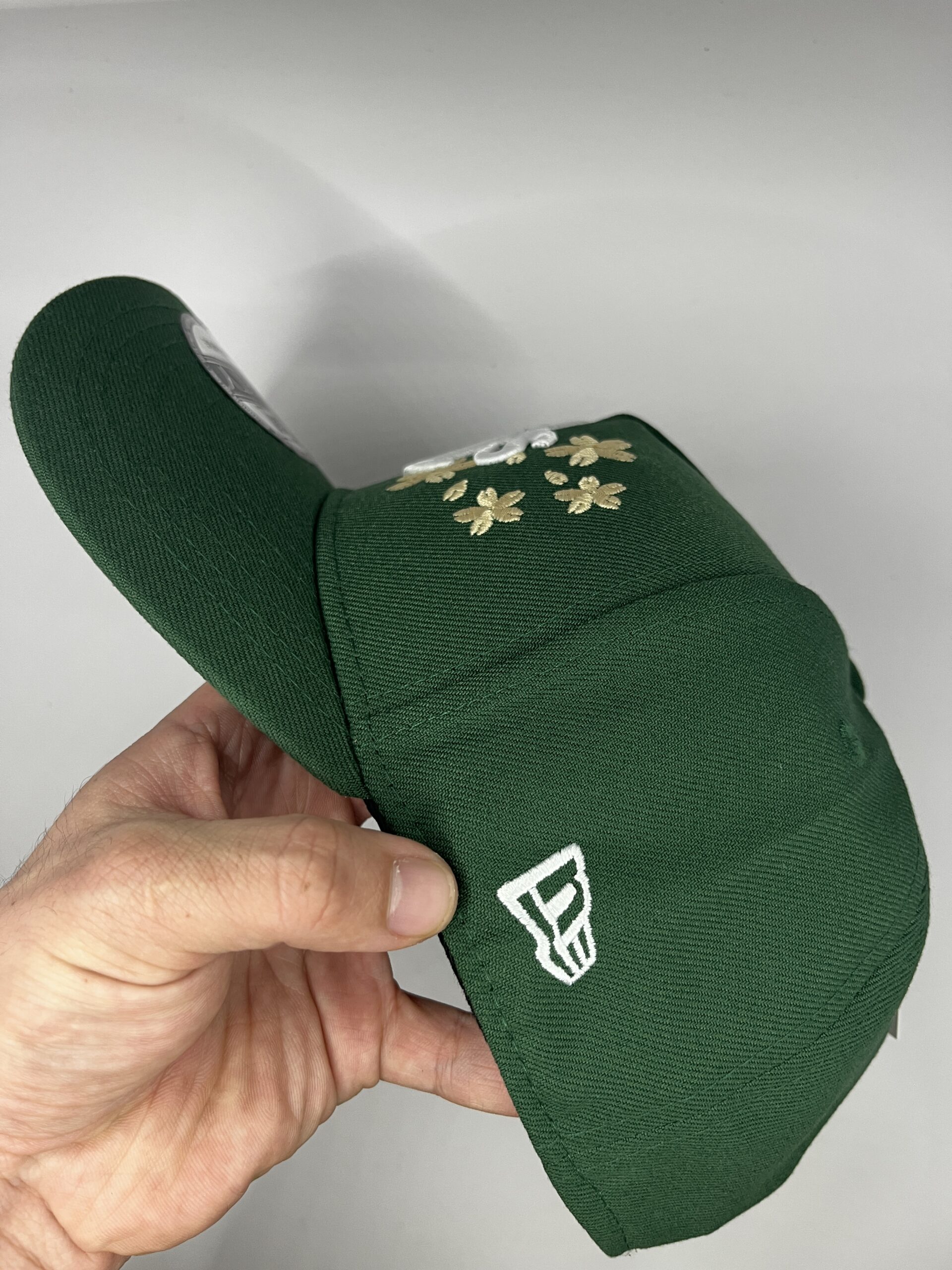 • Logo frontal bordado “AS” rodeado de pequeñas flores doradas