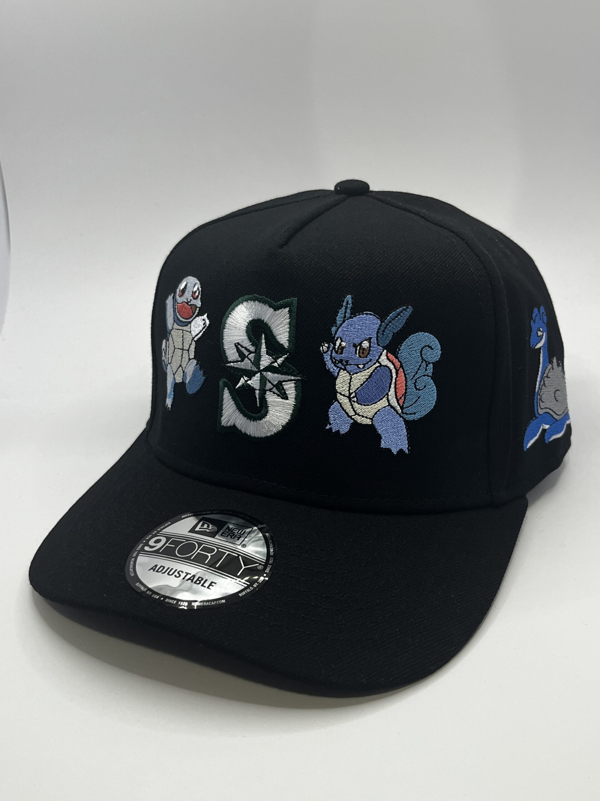 • Diseño: Todos los evoluciones de Squirtle bordados alrededor de la gorra