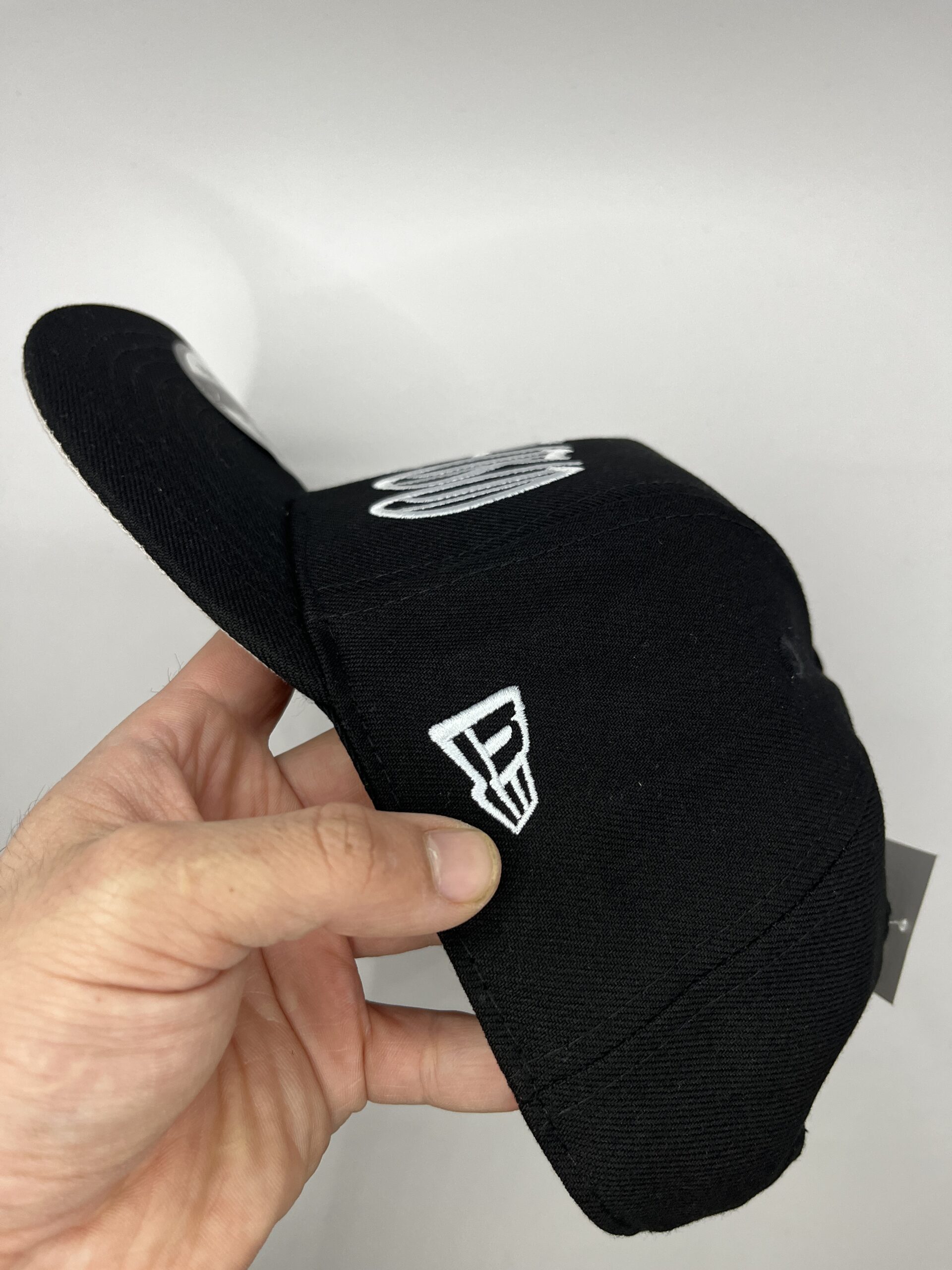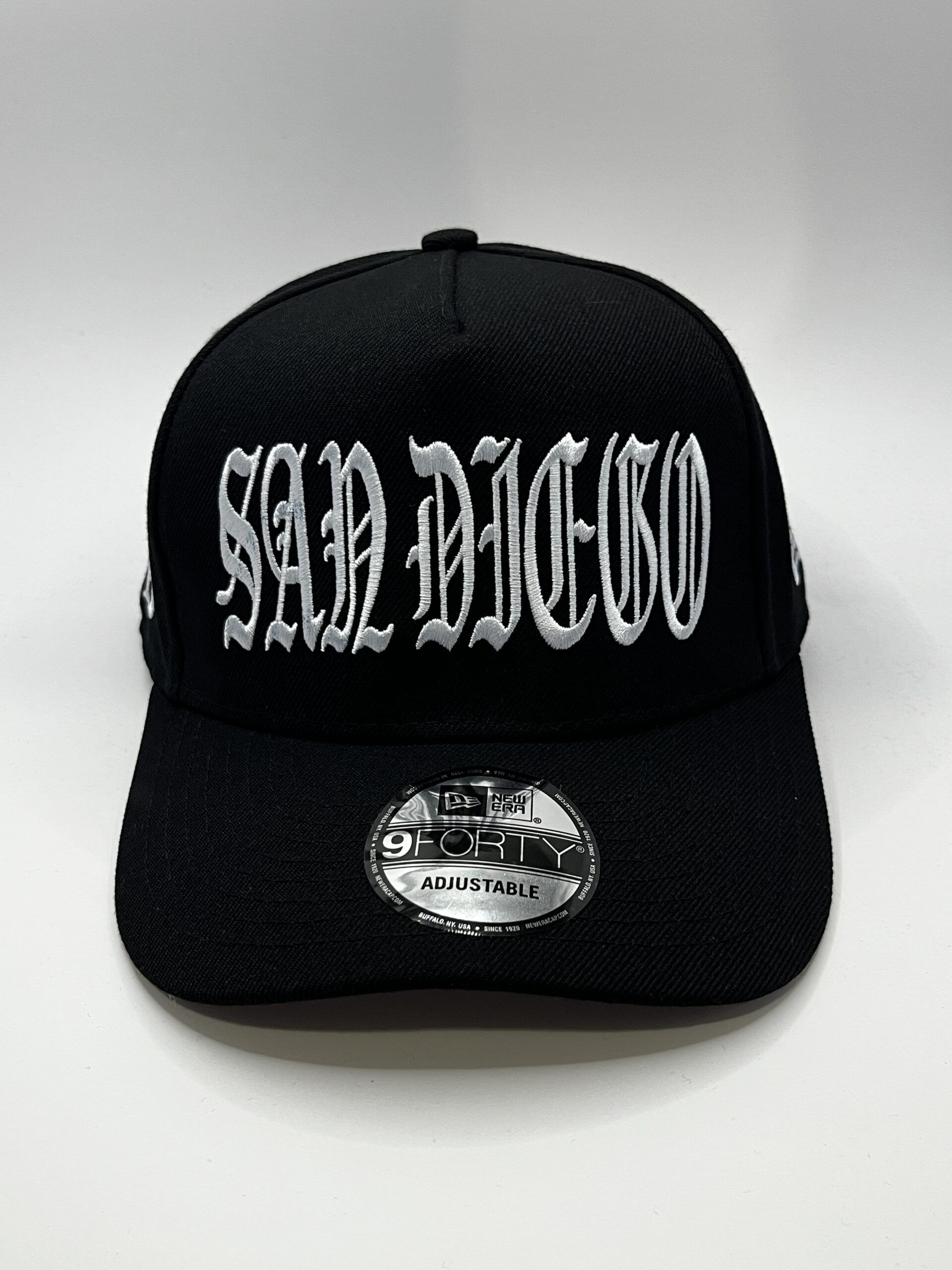 • Logo frontal: Letras estilo “Gothic” bordadas en blanco