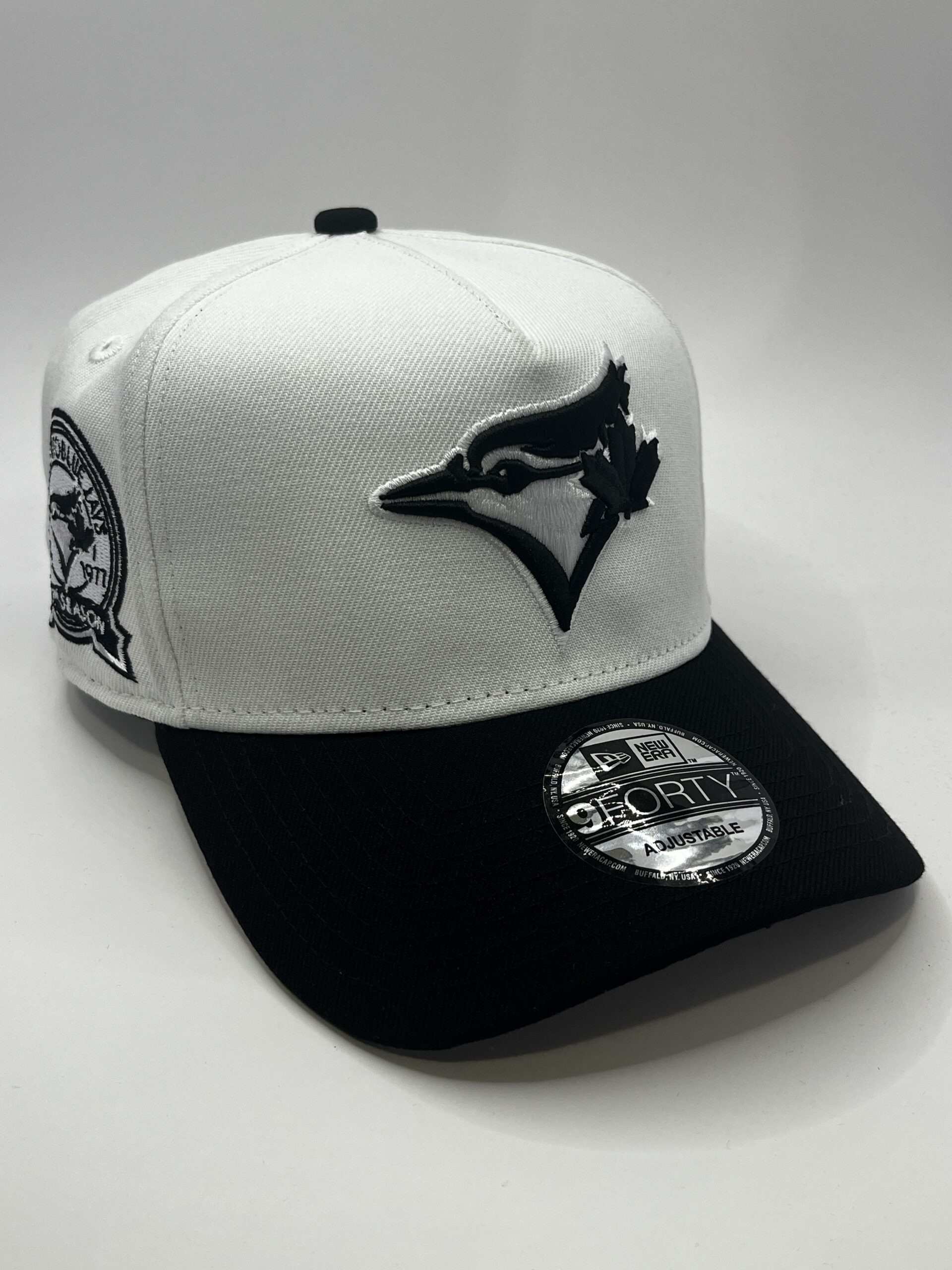 Gorra New Era 9FORTY Toronto Blue Jays Blanca y Negra Ajustable