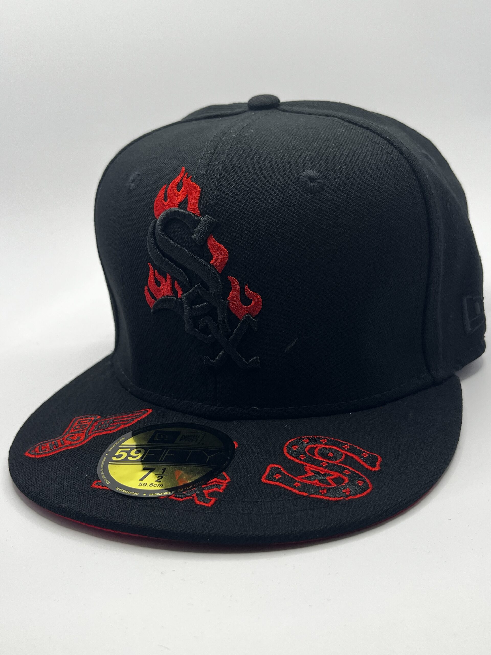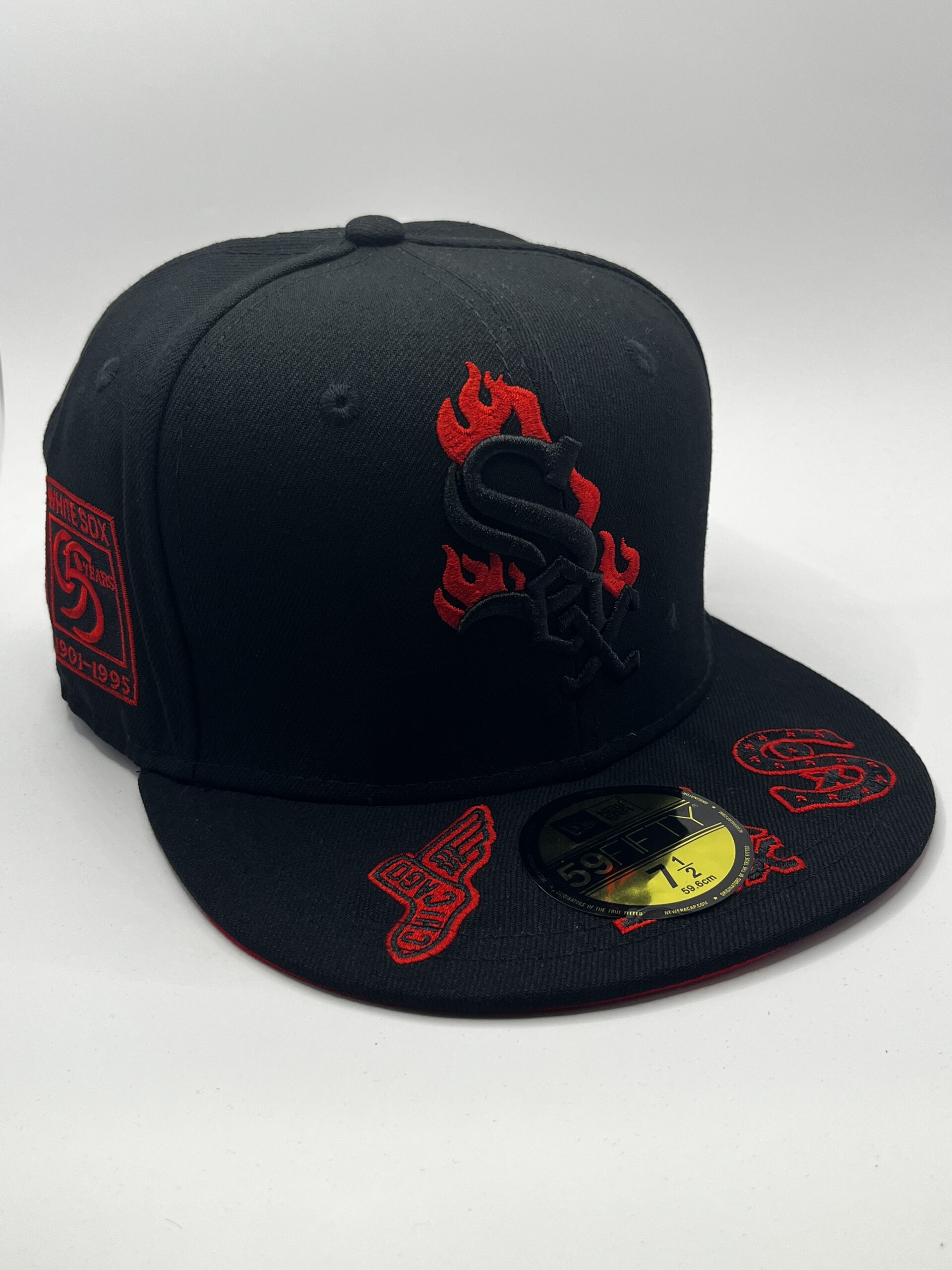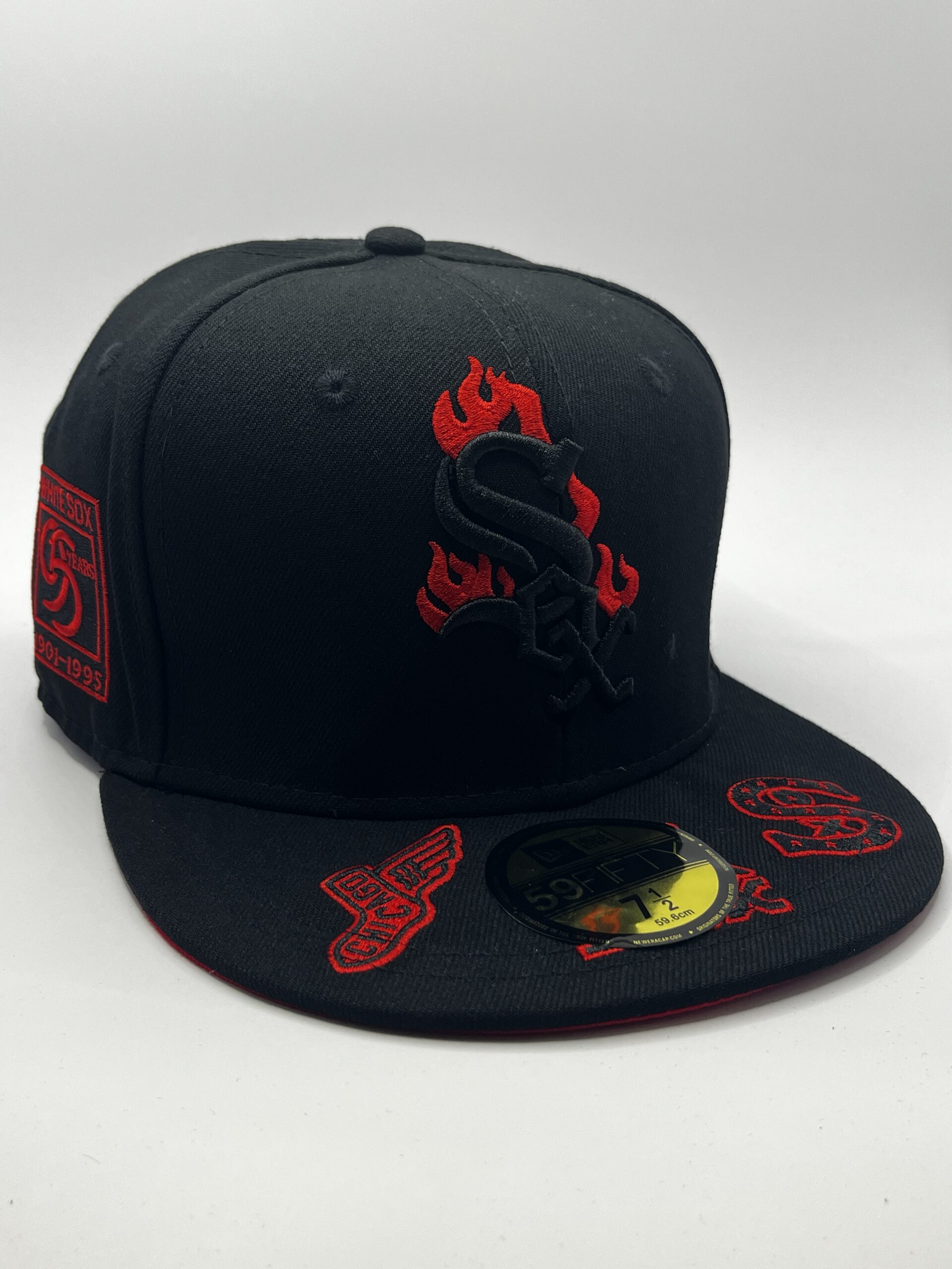 Gorra New Era modelo 59FIFTY cerrada (fitted) del equipo Chicago White Sox en edición especial 95º Aniversario con diseño en llamas.
