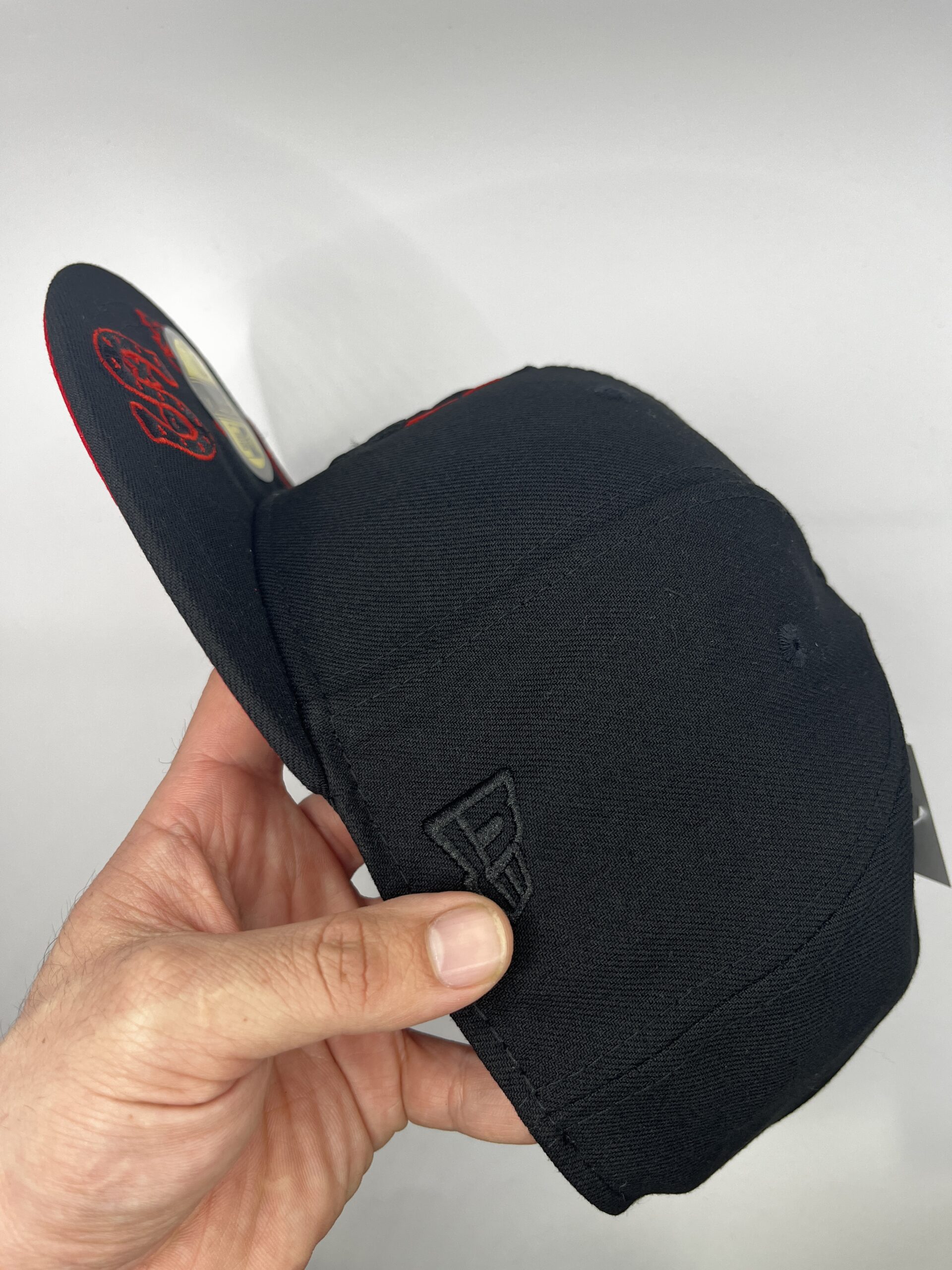 • Parche frontal: “SOX” bordado en negro con llamas rojas
