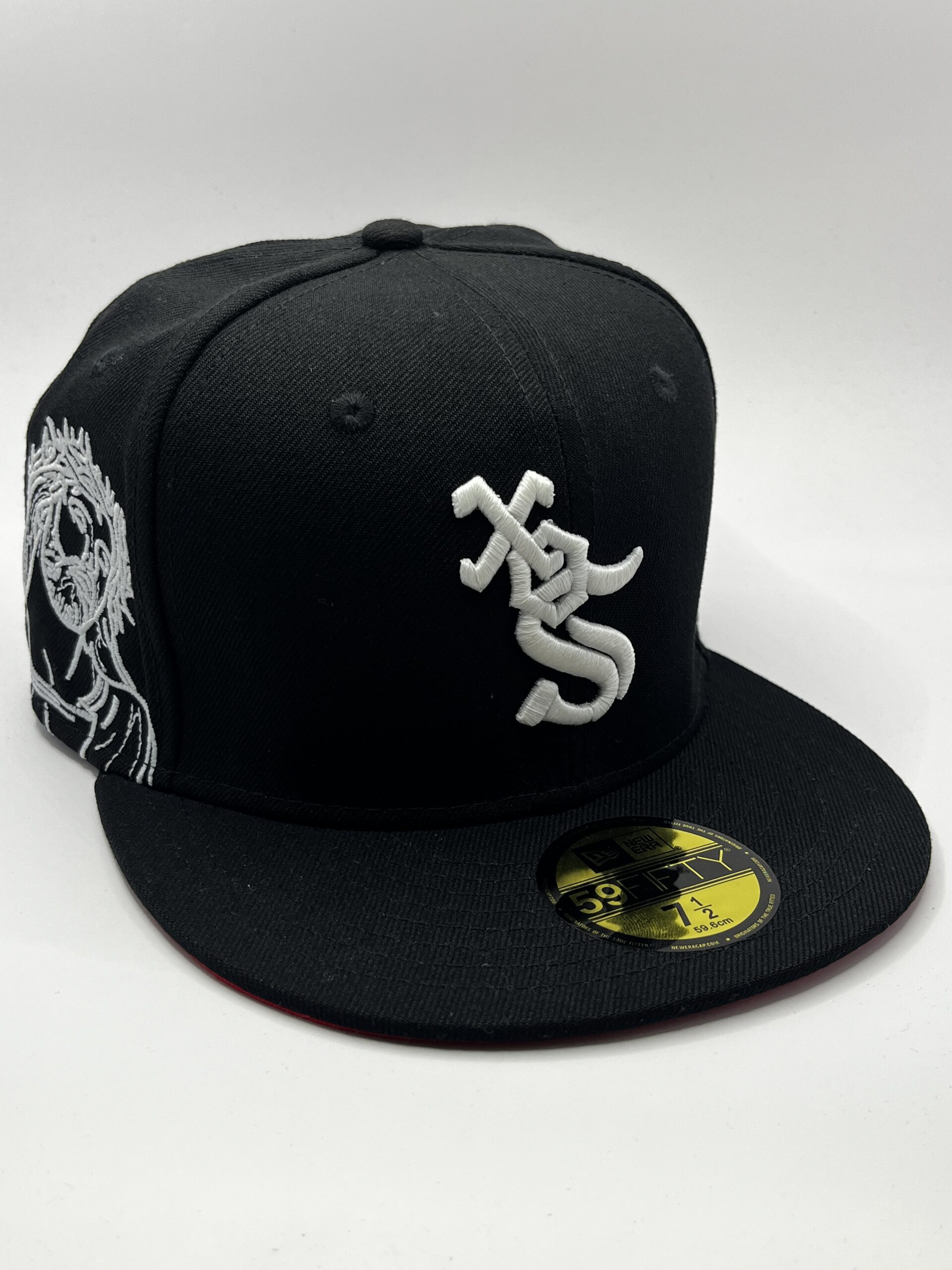 Diseño exclusivo que combina negro, blanco y detalles religiosos que brillan en la oscuridad, ideal para fans de los White Sox y coleccionistas de ediciones especiales.