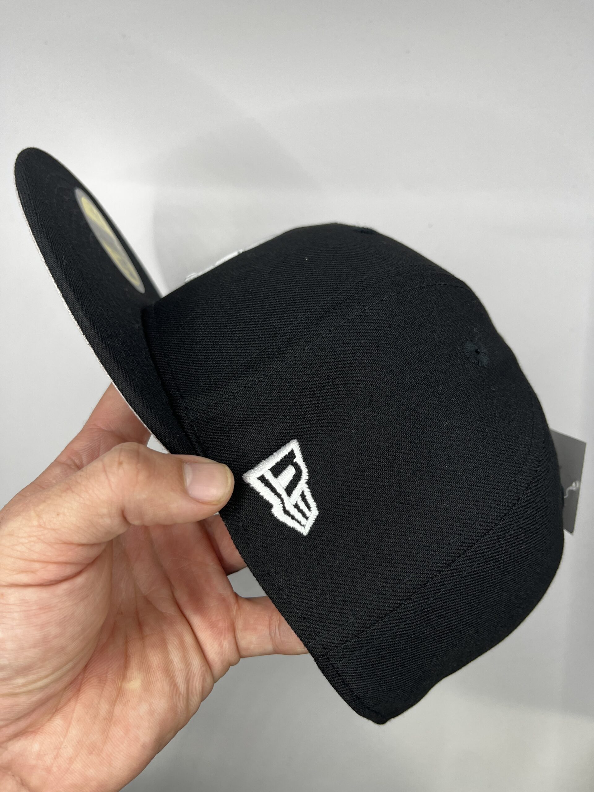 Diseño elegante y coleccionable que combina negro y blanco con detalles conmemorativos de los Dodgers, ideal para fans del equipo y coleccionistas de gorras premium.
